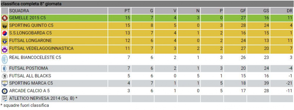 Il Futsal Postioma nonstante la sconfitta rimane in una posizione tranquilla di classifica anche il distacco dalla zona playoff ora è di 4 punti.