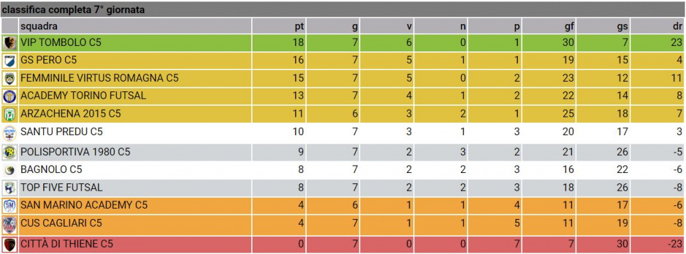 In vetta un terzetto a 12 punti, INFINITY FUTSAL ACADEMY, FUTSAL HURRICANE e PONTE SAN NICOLO' segue il REAL GRISIGNANO a quota 10.