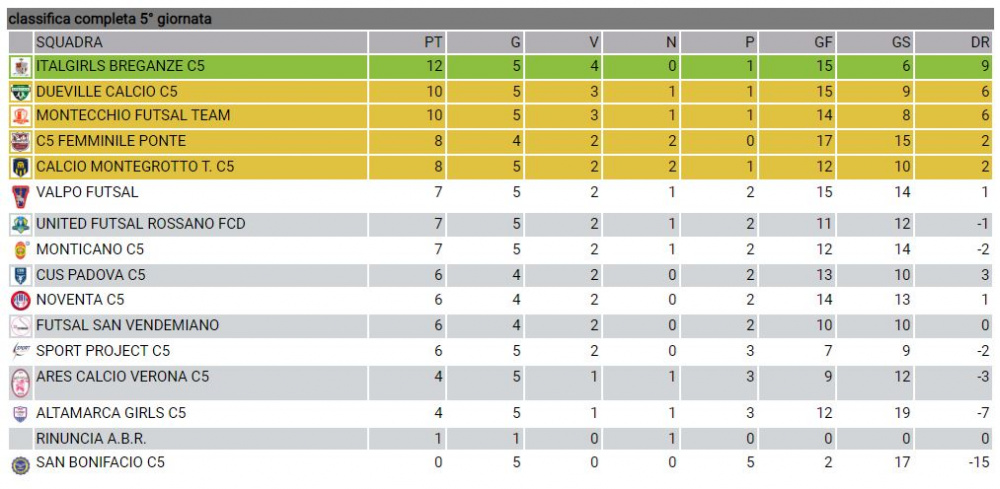 LA GAZZA del FUTSAL FEMMINILE VENETO 20.10