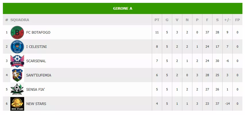 FC BOTAFOGO - SANT'EUFEMIA = 9 a 6 Venerdì 23/01/26 (20:00) - Vertigo