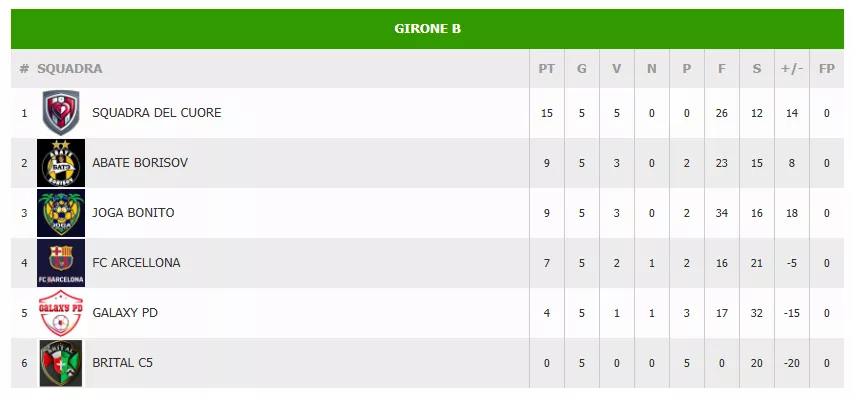 Joga Bonito: Zanetti Riccardo (2), Rigato Mirco (2), Rigato Federico (3), Migliorisi Demis (5), Helbelt Mihail (2)