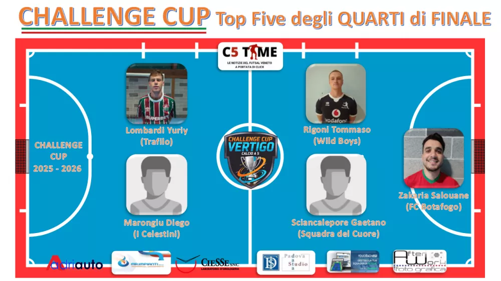 Il sipario si è alzato, la polvere si è posata e solo quattro giganti sono rimasti in piedi: i QUARTI di FINALE della Challenge Cup hanno regalato una due giorni di puro agonismo, tecnica sopraffina e cuori che battono all’unisono con il rimbalzo del pallone. Tra lunedì 23 e martedì 24 febbraio 2026, il Vertigo è diventato l'epicentro del calcio a 5, un'arena dove ogni centimetro di campo è stato sudato e ogni gol è stato un urlo di liberazione.