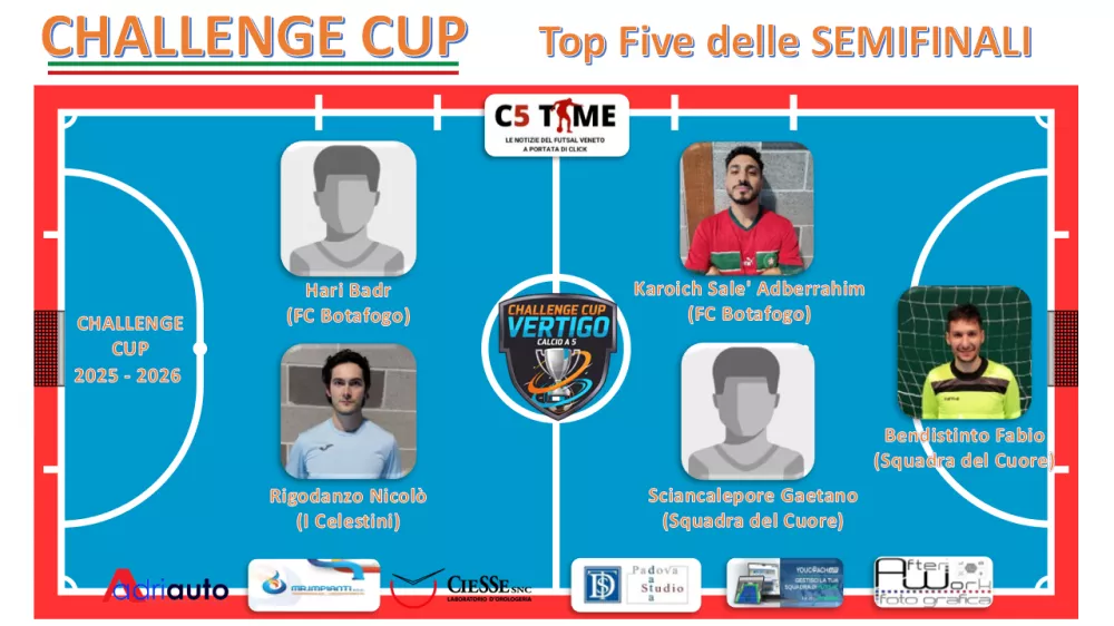 Il destino ha emesso i suoi verdetti. Sotto le luci del Vertigo Sport Center, mercoledì 25 febbraio 2026, si è scritta una pagina indelebile di questa Challenge Cup. Due semifinali vissute sul filo della tensione, tra giocate d'alta scuola, sudore e quel pizzico di gloria che solo il calcio a 5 sa regalare. Ecco com'è andata la serata che ha decretato le due regine della competizione.