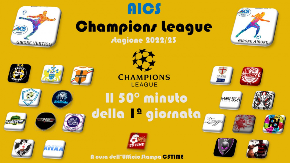 Nella AICS CHAMPIONS LEAGUE sono state inserite le squadre che partecipano al Campionato di Serie A nei rispettivi Gironi VERTIGO & AIRONE, più la squadra che conduce la Serie B nel Girone Vertigo (quello più numeroso).