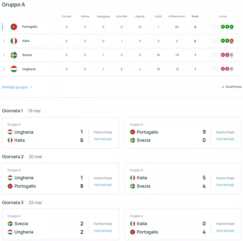 Match 6: Portogallo – Tanzania = 23 Novembre