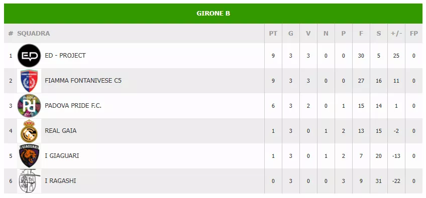 ED - PROJECT (9 PT): Leader per differenza reti (+25) e macchina da guerra offensiva. Sono loro la squadra con più reti segnate (ben 30 gol totali) e anche la difesa più ermetica, essendo la squadra con meno reti subite (solo 5 gol al passivo).