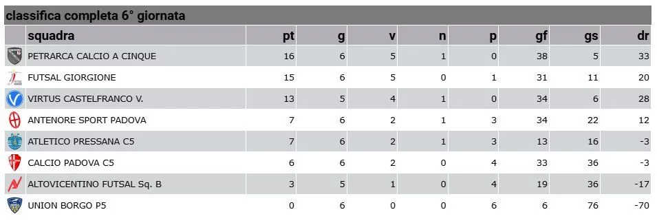 FUTSAL GIORGIONE – PETRARCA CALCIO A CINQUE = 0 a 6