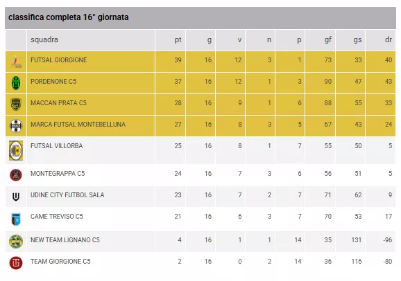 MONTEGRAPPA C5 - UDINE CITY FUTBOL SALA = Domenica 15/03/2026 - 11:00 (And. 6 a 6)