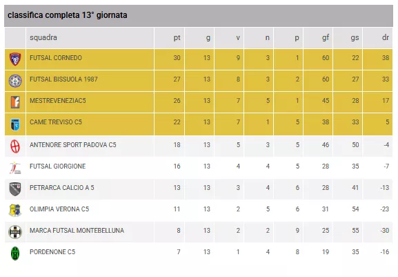 OLIMPIA VERONA C5 - ANTENORE SPORT PADOVA C5 = Sabato 14/03/2026 - 18:30 (And. 2 a 6)PETRARCA CALCIO A 5 - CAME TREVISO C5 = Sabato 14/03/2026 - 15:45 (And. 1 a 4)