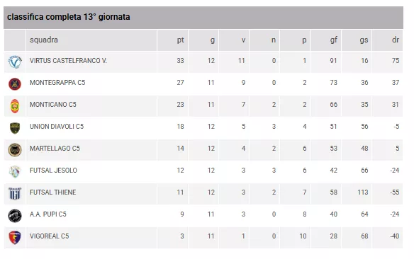 TEAM VALPOLICELLA C5 - VIRTUS CASTELFRANCO V. C5 = Venerdì 13/03/2026 - 21:30 (And. 1 a 7)