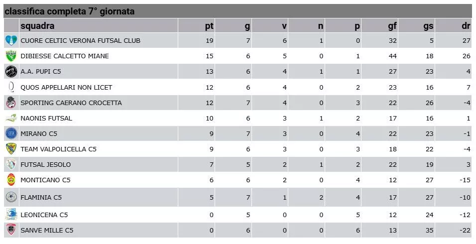 > Regolamento < > Calendario < > Indirizzario < > Designazioni Arbitri A.I.A. < > Richiesta Variazione Gara < > News Serie C2 <P.S.: Se qualcuno possiede una foto della squadra relativa alla stagione 2024/25, è pregato di inviarla al numero 340.8599090 (Giornale di Vicenza) tramite WhatsApp. In questo modo, potremo avere delle immagini da utilizzare per i prossimi articoli sportivi sul futsal. Grazie per la collaborazione!