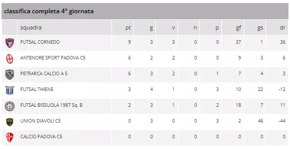 ANTENORE SPORT PADOVA C5 - FUTSAL CORNEDO = 10:00