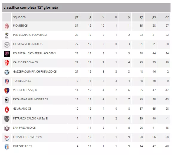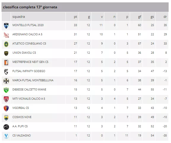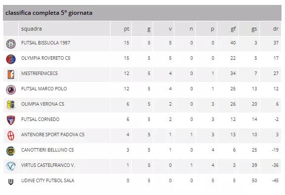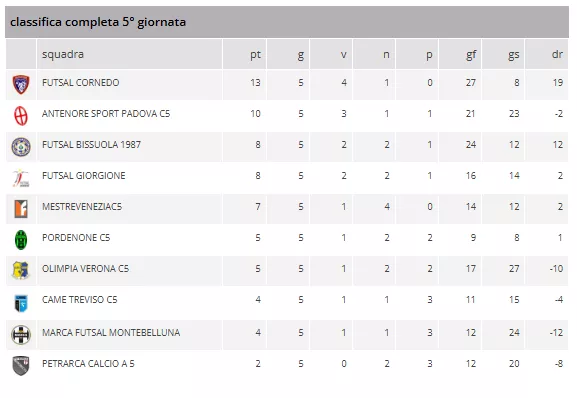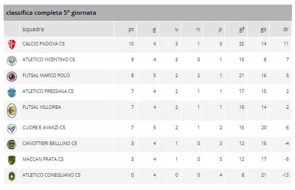 ANTENORE SPORT PADOVA C5 - CANOTTIERI BELLUNO C5 = Domenica 11/01/2026 10:00FUTSAL CORNEDO - UDINE CITY FUTBOL SALA = Domenica 11/01/2026 11:00