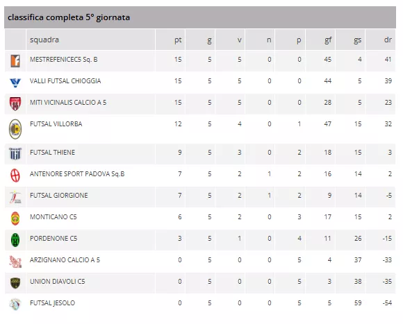 MESTREFENICEC5 SQ. B - FUTSAL JESOLO = 15 a 0 (4 a 0)
