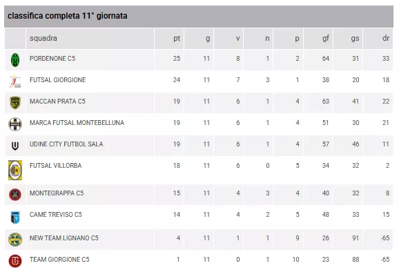 UDINE CITY FUTBOL SALA - NEW TEAM LIGNANO C5 = Domenica 08/02/2026 11:00 (And.: 9 a 3)
