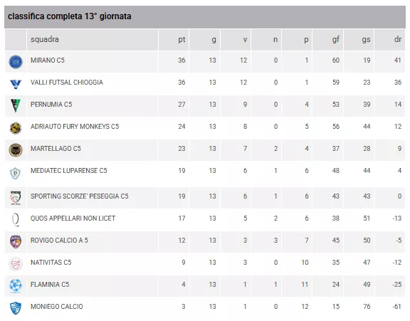 NEW TEAM LIGNANO C5 - MONTEGRAPPA C5 = Domenica 25/01/2026 11:00 (And.: 0 a 11)