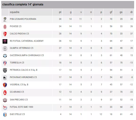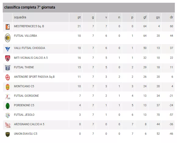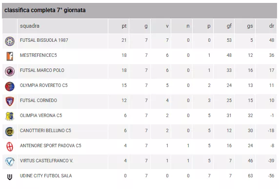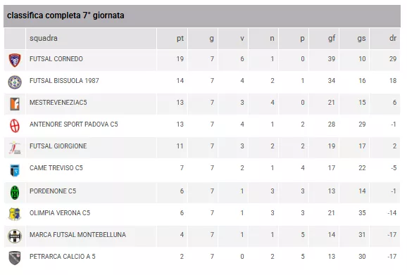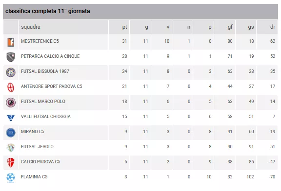 ANTENORE SPORT PADOVA C5 - MESTREFENICEC5 = Domenica 25/01/2026 11:00FUTSAL MARCO POLO - FUTSAL BISSUOLA 1987 = Domenica 25/01/2026 16:30