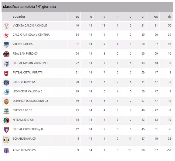 SERIE D Gir. A di Vicenza <> Forum C5 TIME Serie D Gir. A di Vicenza <
