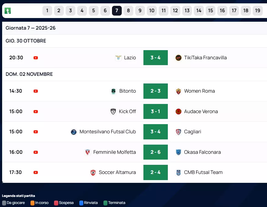 7ª giornata - Sabato 8 e Domenica 09/11/2025