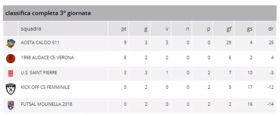 AOSTA CALCIO 511 - KICK OFF C5 FEMMINILE = 11 a 3