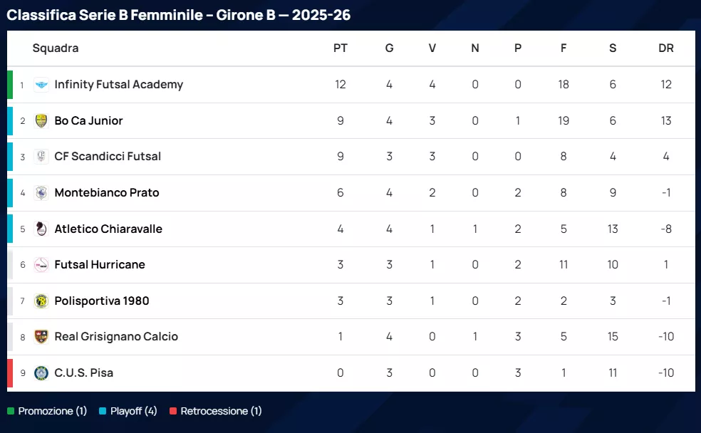 CLASSIFICA di SERIE B Gir. B Fem.