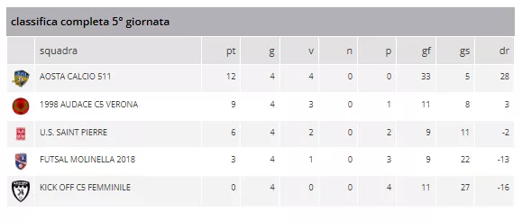 AOSTA CALCIO 511 - KICK OFF C5 FEMMINILE = 11 a 3