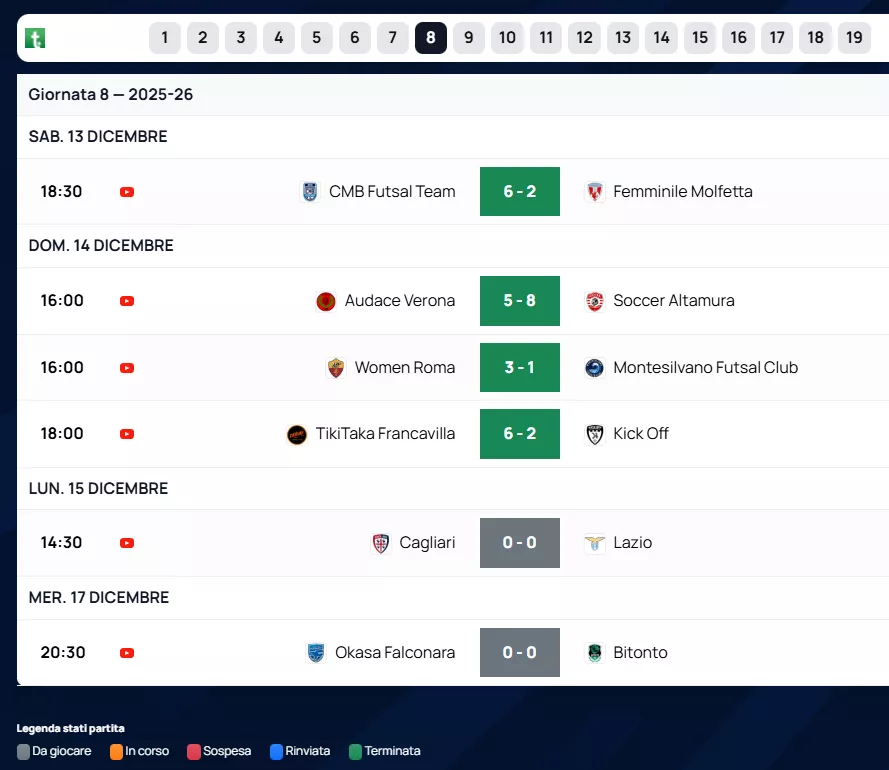 12ª giornata - Sabato 13 e Domenica 14/12/2025