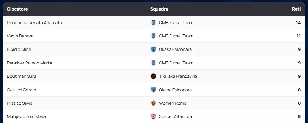 2005 Real Statte, 2006 Real Statte, 2007 Pescara, 2008 Real Statte, 2009 Real Statte, 2010 ISEF Poggiomarino, 2011 Montesilvano, 2012 Pro Reggina, 2013 Sinnai, 2014 Lazio Femminile, 2015 Ternana, 2016 Montesilvano, 2017 Olimpus, 2018 Montesilvano, 2019 Kick Off, 2020 non assegnata, 2021 Città di Falconara, 2022 Città di Falconara, 2023 Bitonto, 2024 Bitonto, 2025 Bitonto