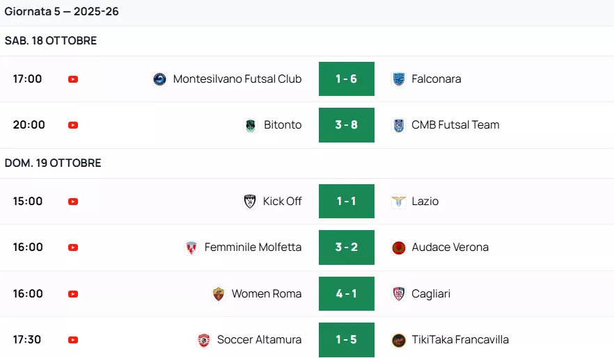 3ª giornata - Sabato 11 e Domenica 12/10/2025