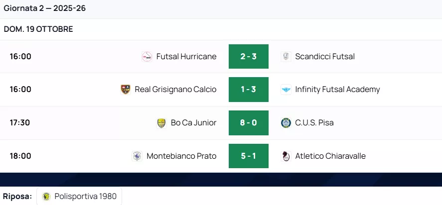 FUTSAL MARCO POLO - MONTALE FOOTBALL FIVE = Domenica 26/10/2025 19:00