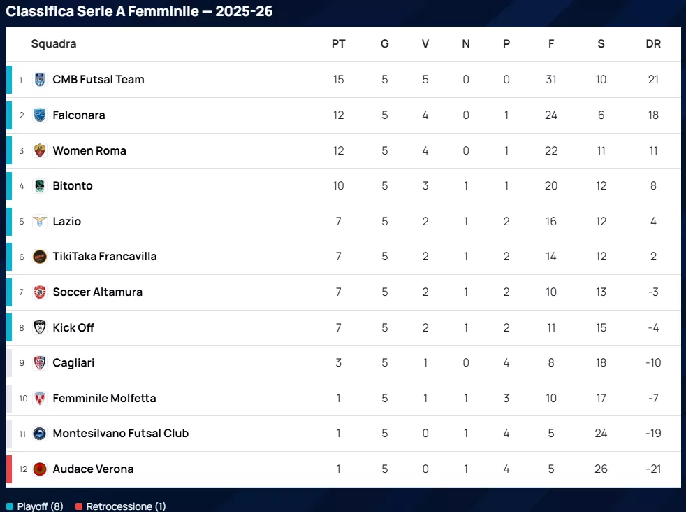 Al Pala Roller di Montale Rangone (MO), le padrone di casa del MONTALE FOOTBALL FIVE dopo tre sconfitte consecutive trova la prima vittoria in campionato battendo 1 a 0 il quotato CALCIO PADOVA C5 dei Mister Parisi Emanuele e Facino Sonia muovendo finalmente la classifica. Per le ospiti trasferta amara che coincide con la prima sconfitta in campionato che allunga la distanza sulla prima in classifica. Per il MONTALE FOOTBALL FIVE la rete è stata siglata da Sanguedolce Valentina nel primo tempo. In porta ha giocato Guicciardi Francesca. Per il CALCIO PADOVA C5 tra i pali è stata schierata Zanella Arianna.
