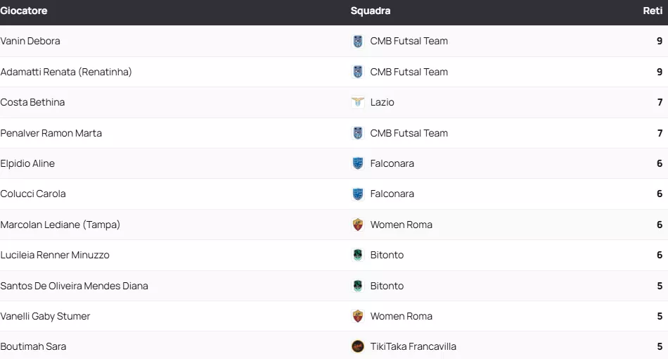 Sanmartino Futsal: Bertoni Emilia - (Portieri: Caretta Giulia e Faccani Susy) - Mister: Centofante Antonio