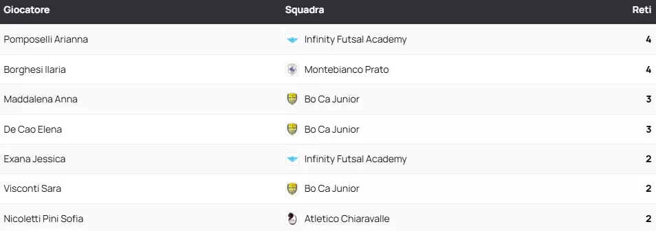 X Martiri: Filippini Francesca, Grassi Federica (2), Fratini Cristina, Sattin Sofia - (Portiere: Faustini Giorgia) - Mister: Dolcetti Cristian