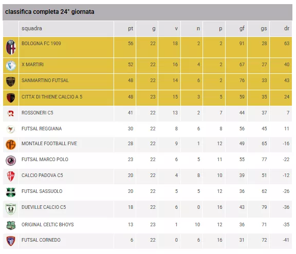 DUEVILLE CALCIO C5 - BOLOGNA FC 1909 = Sabato 28/03/2026 16:30 (And.: 0 a 9)