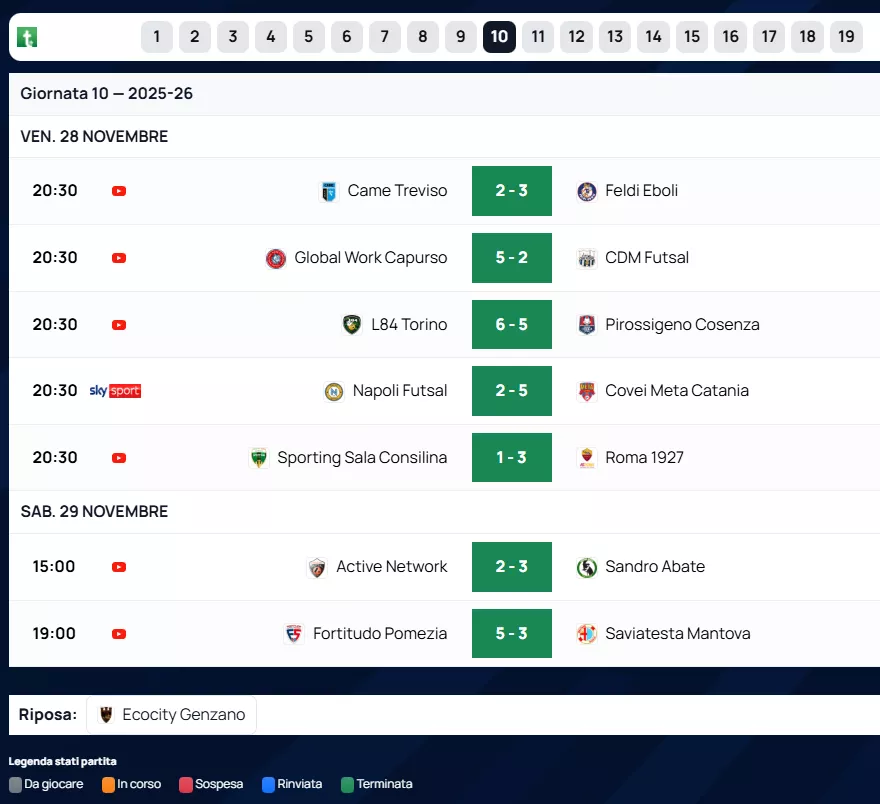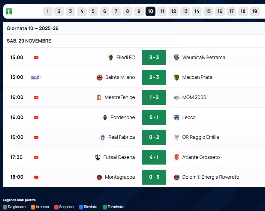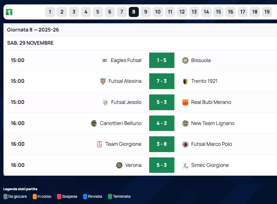 Di seguito RISULTATI & CLASSIFICHE & MARCATORI & ARBITRI al Triplice Fischio Finale delle squadre Venete di Futsal, nel Nazionale. Con le Designazioni Arbitrali dell'A.I.A.