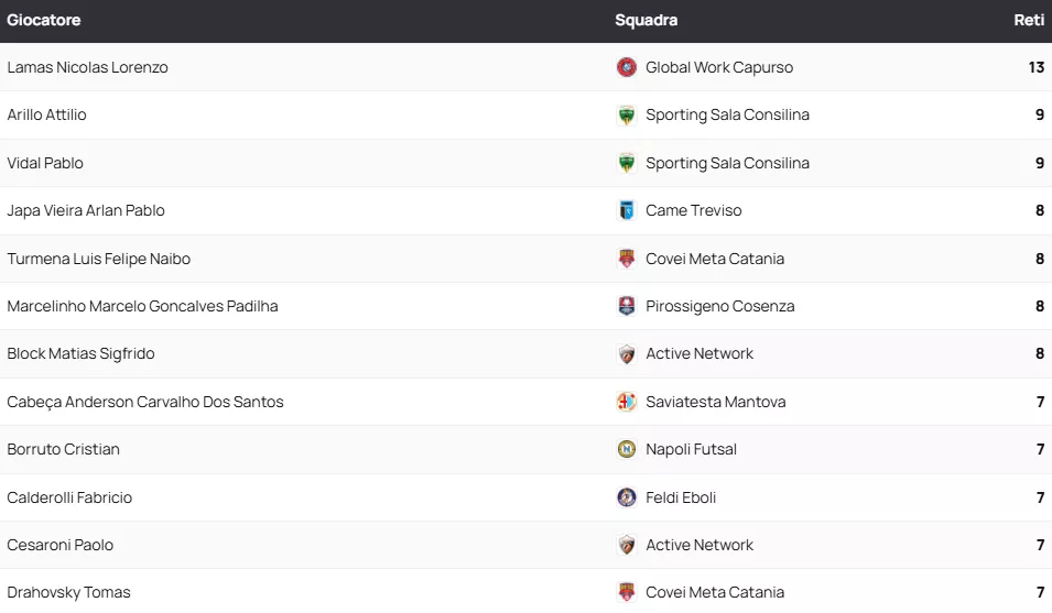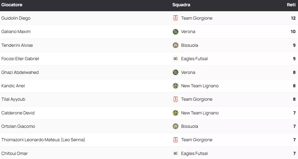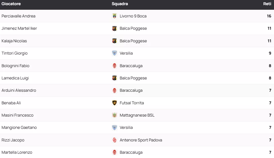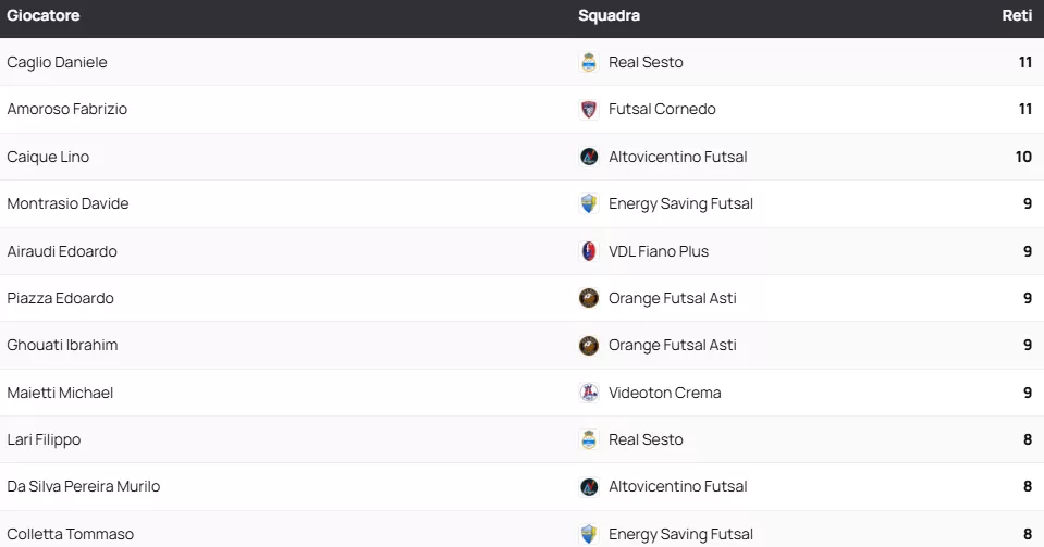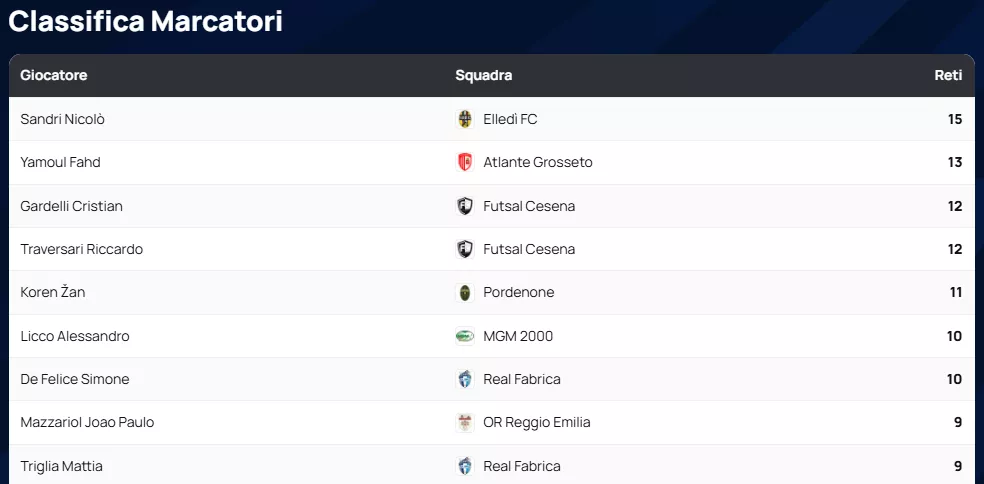 Classifica Marcatori SERIE A2 Élite Gir. A
