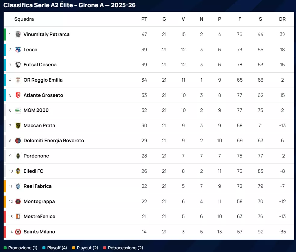 A sole cinque giornate dal traguardo della regular season, il Girone A della Serie A2 Élite infiamma i palazzetti con una 21ª giornata che ha rimescolato ambizioni e paure. Se la lotta per i Playoff e la salvezza resta un incendio indomabile dove ogni gol può stravolgere il destino di una stagione, in vetta il verdetto profuma già di leggenda: la promozione diretta è ormai nelle mani dei giganti padovani.