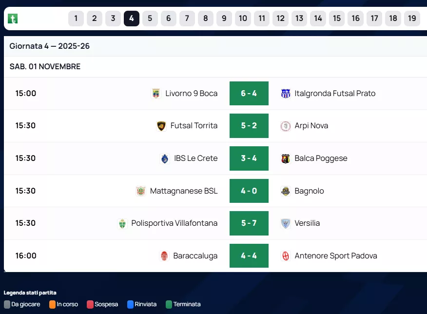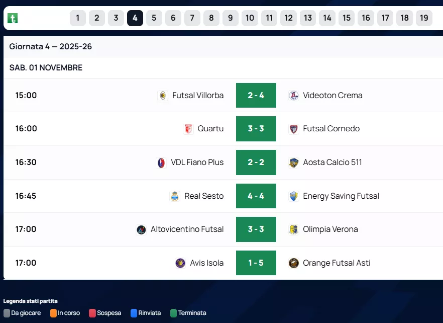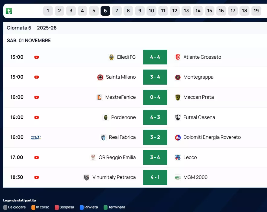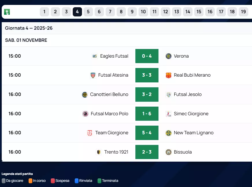 Di seguito RISULTATI & CLASSIFICHE & MARCATORI & ARBITRI al Triplice Fischio Finale delle squadre Venete di Futsal, nel Nazionale. Con le Designazioni Arbitrali dell'A.I.A.