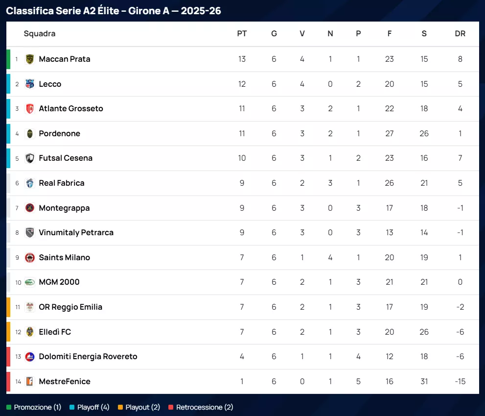 CLASSIFICA di SERIE A2 Élite Gir. A