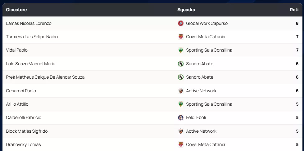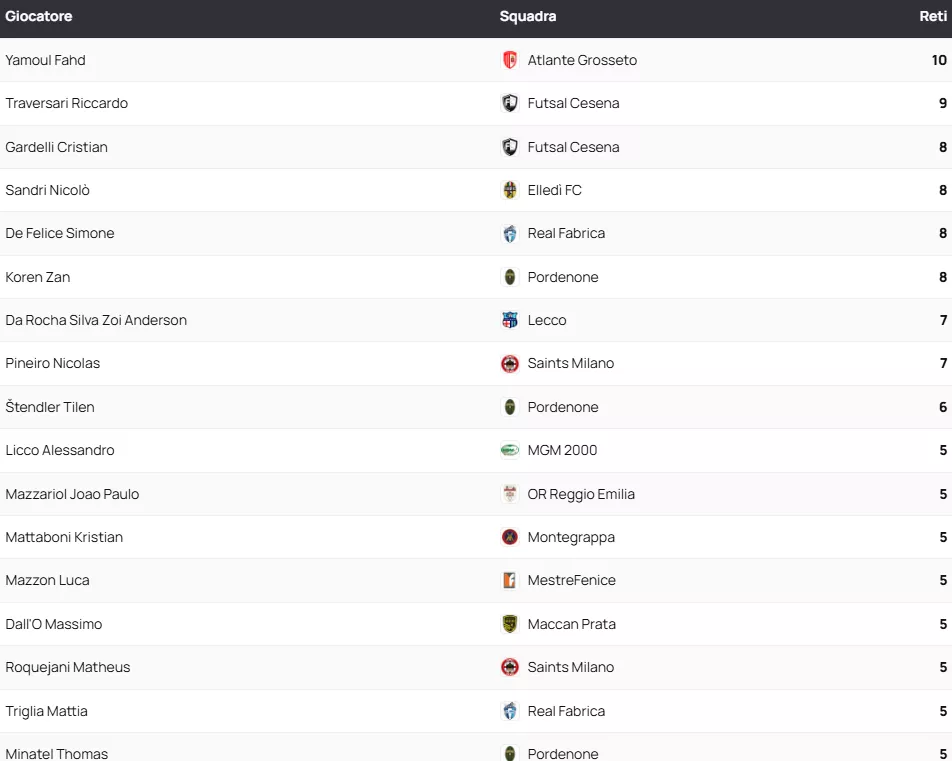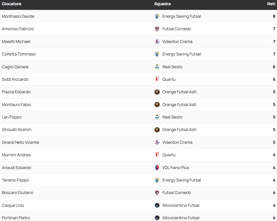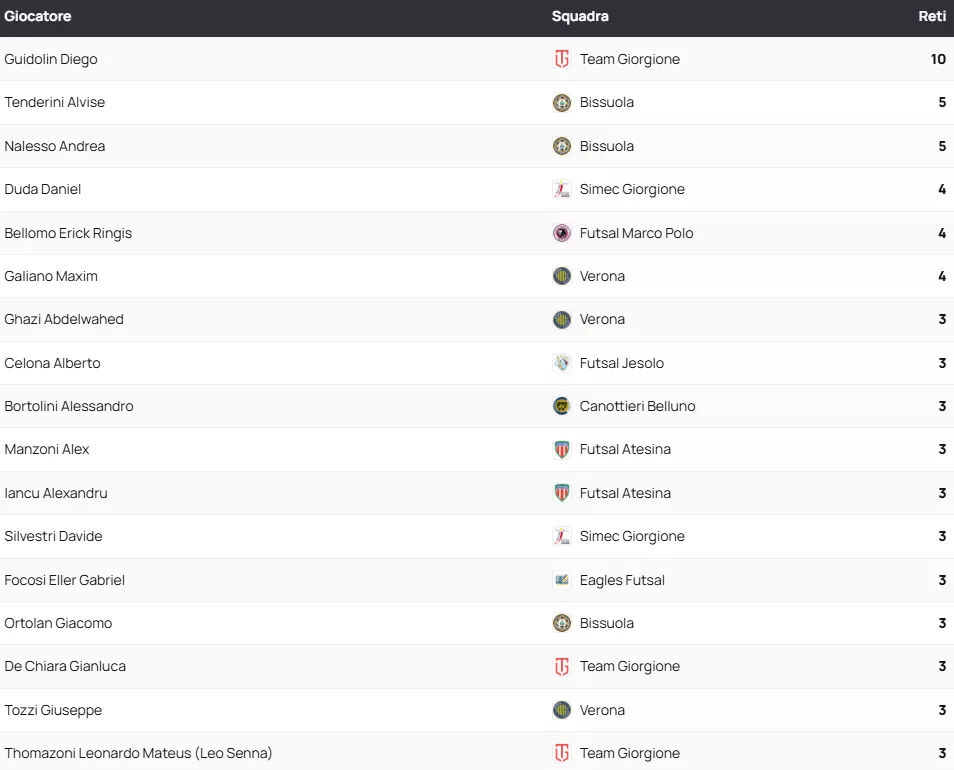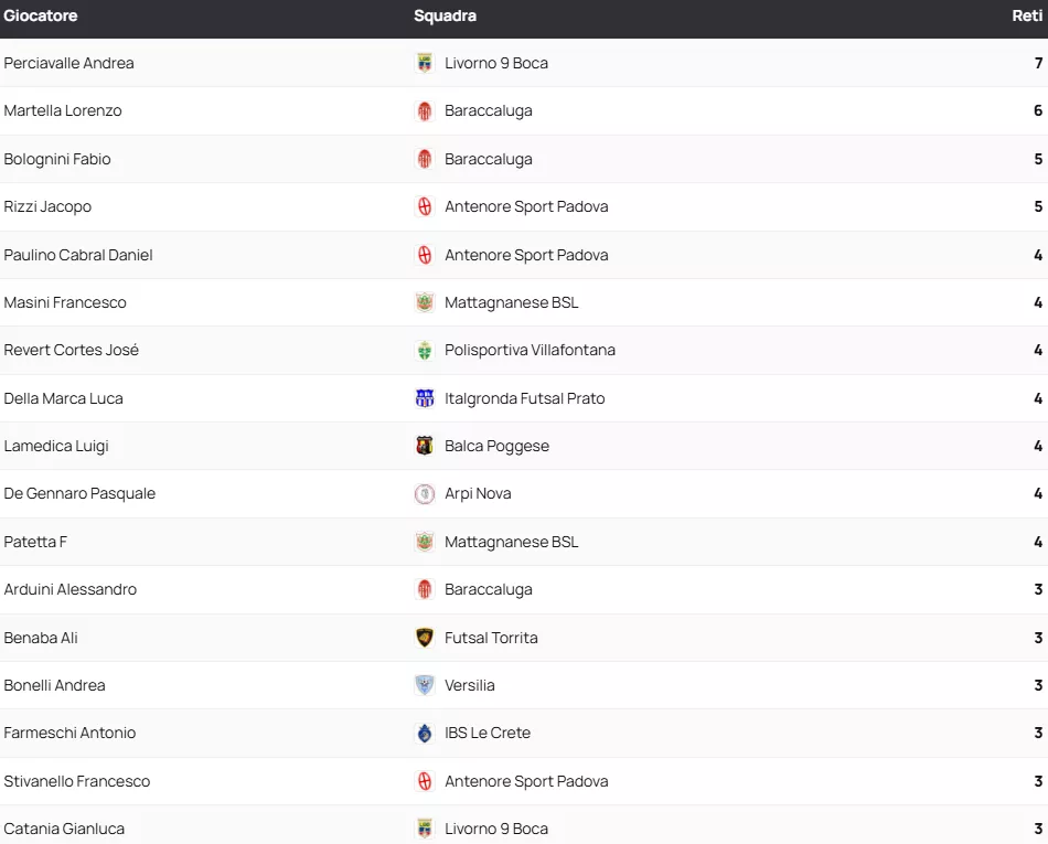 Classifica Marcatori SERIE A2 Élite Gir. A