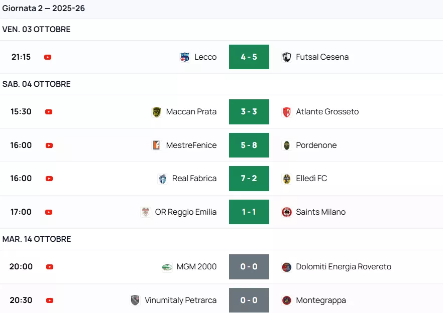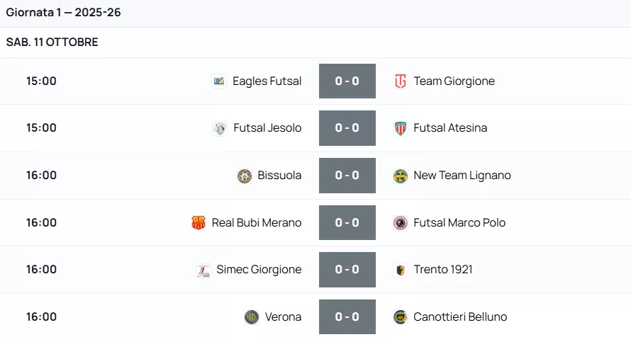 Di seguito RISULTATI & CLASSIFICHE & MARCATORI & ARBITRI al Triplice Fischio Finale delle squadre Venete di Futsal, nel Nazionale. Con le Designazioni Arbitrali dell'A.I.A.