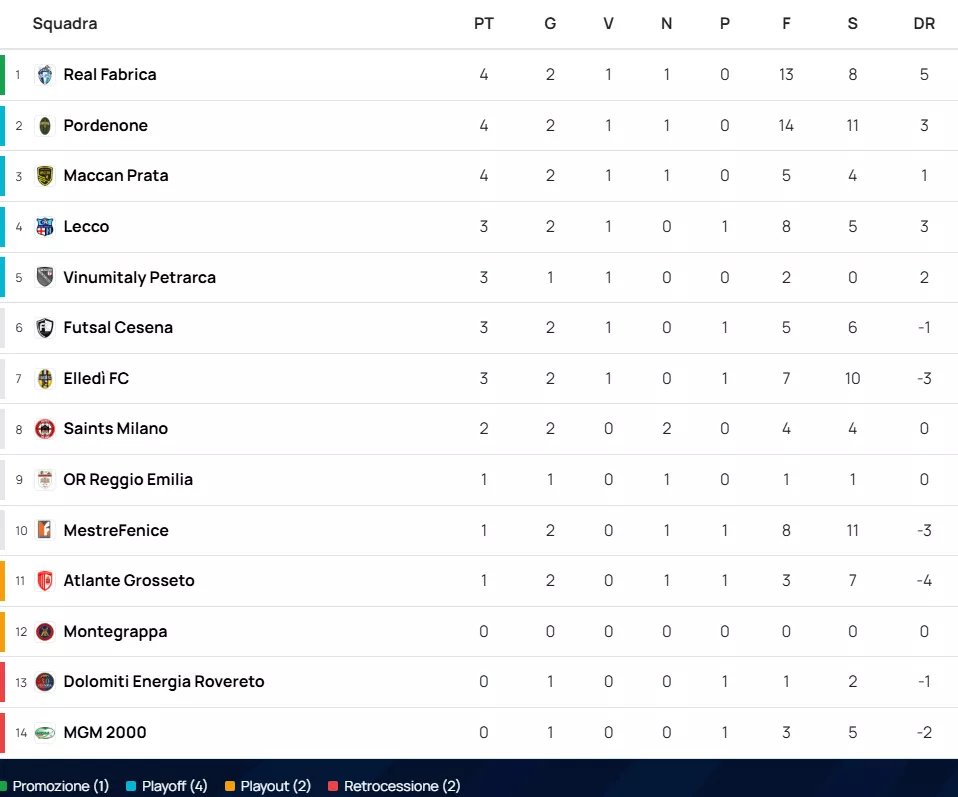 CLASSIFICA di SERIE A2 Élite Gir. A