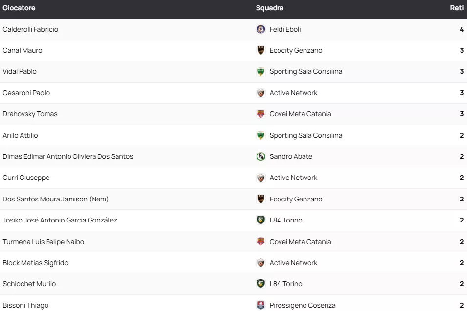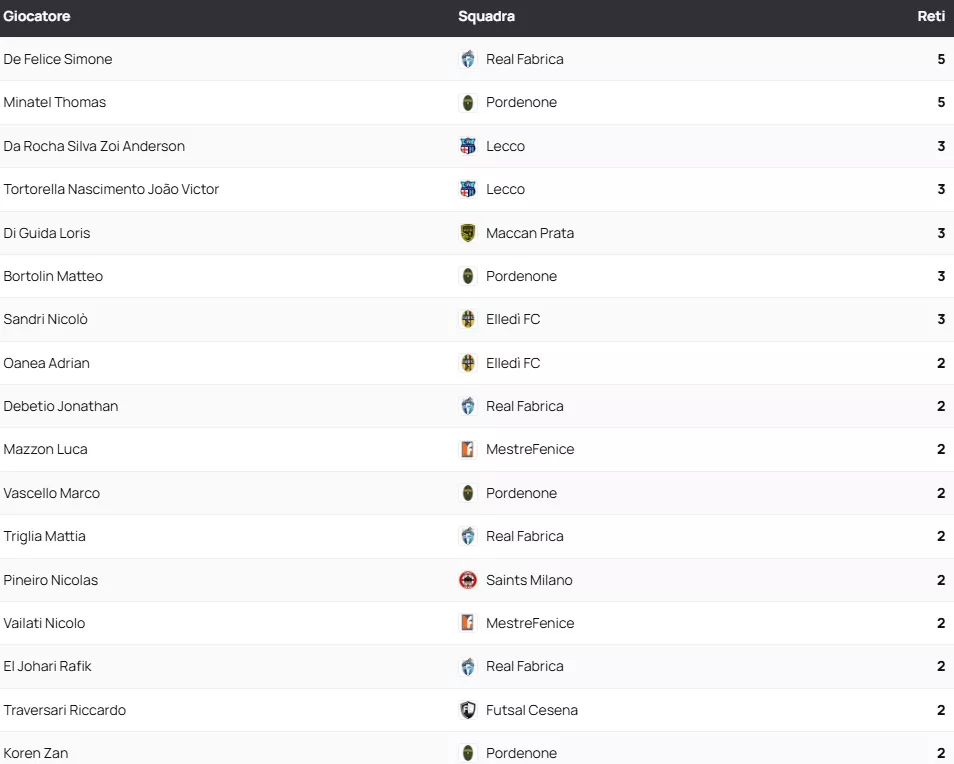 Classifica Marcatori SERIE A2 Élite Gir. A