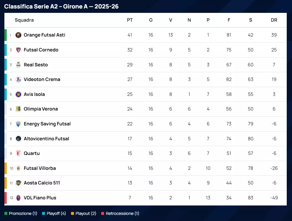 CLASSIFICA di SERIE A2 Élite Gir. A