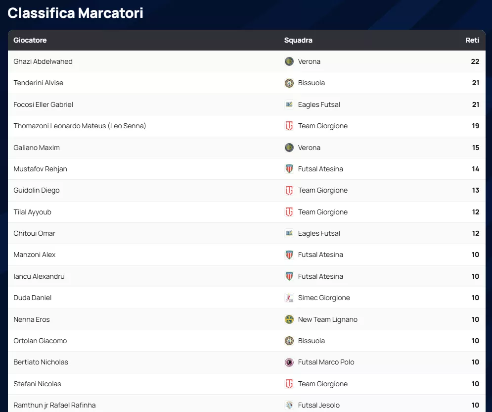 Dalle prime corse dei Primi Calci fino alle sfide infuocate delle Nazionali, siamo il punto di riferimento per il Futsal Veneto e oltre. Per noi non esistono "piccole" categorie: ogni atleta, ogni gol e ogni parata meritano visibilità, statistiche precise e un racconto professionale.