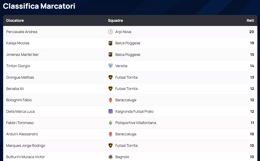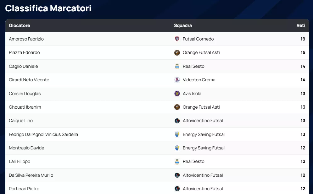 Classifica Marcatori SERIE A2 Élite Gir. A