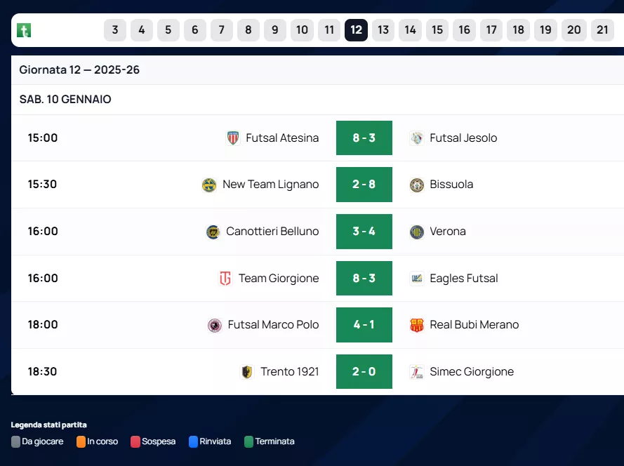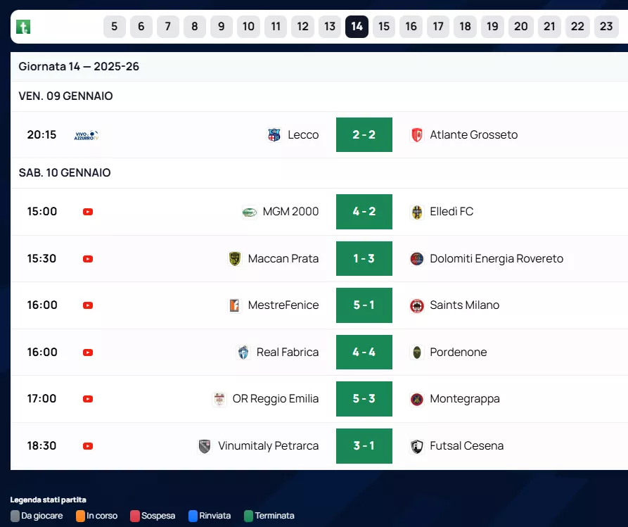 Di seguito RISULTATI & CLASSIFICHE & MARCATORI & ARBITRI al Triplice Fischio Finale delle squadre Venete di Futsal, nel Nazionale. Con le Designazioni Arbitrali dell'A.I.A.