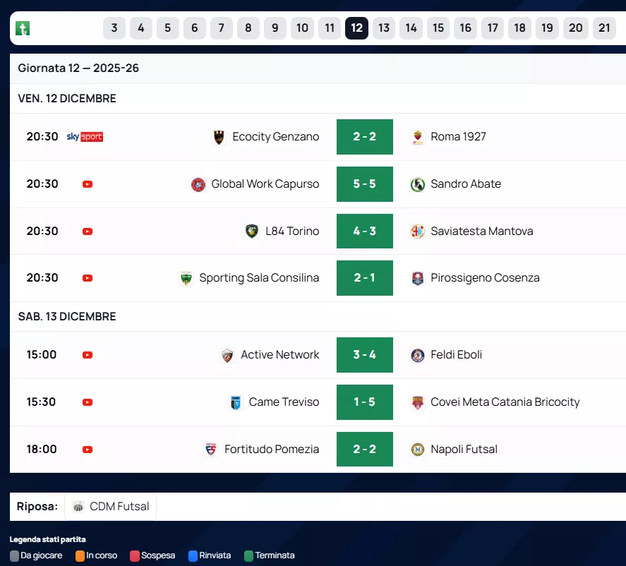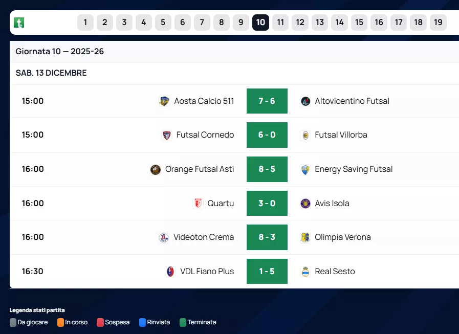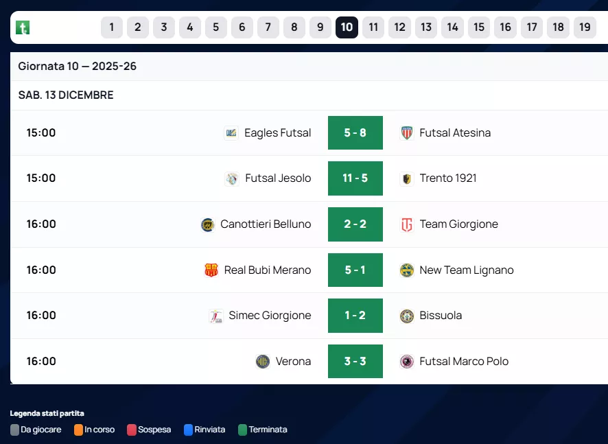 Di seguito RISULTATI & CLASSIFICHE & MARCATORI & ARBITRI al Triplice Fischio Finale delle squadre Venete di Futsal, nel Nazionale. Con le Designazioni Arbitrali dell'A.I.A.