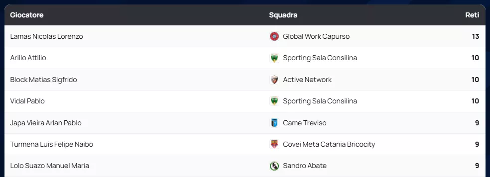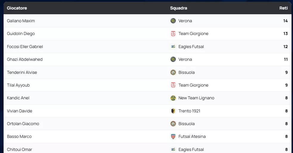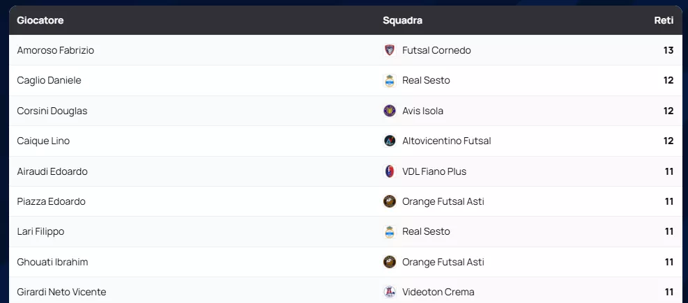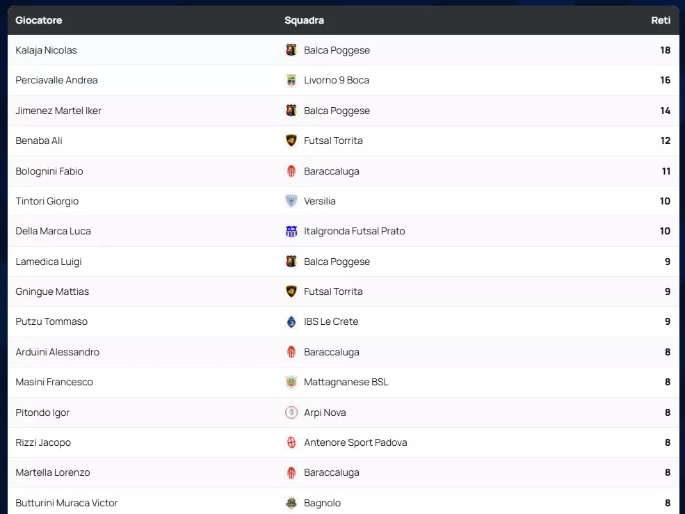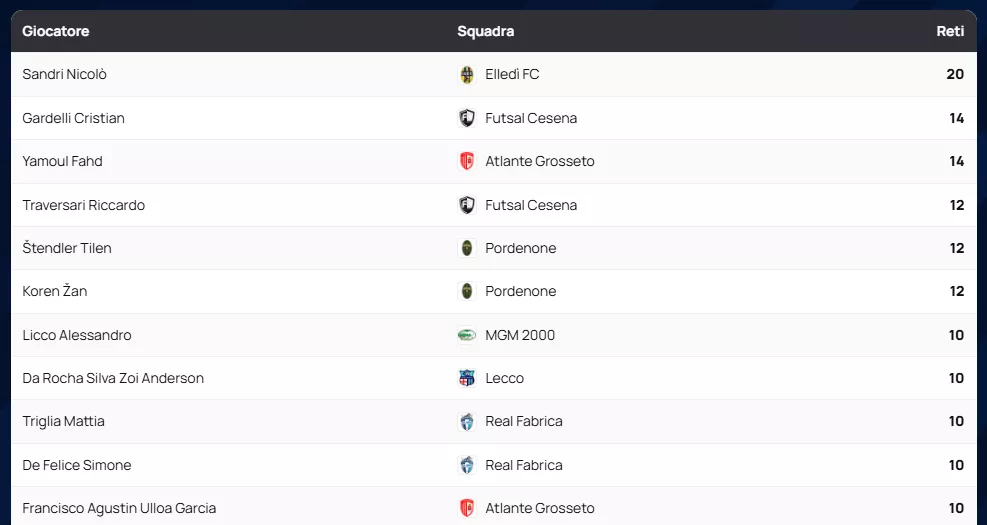 Classifica Marcatori SERIE A2 Élite Gir. A