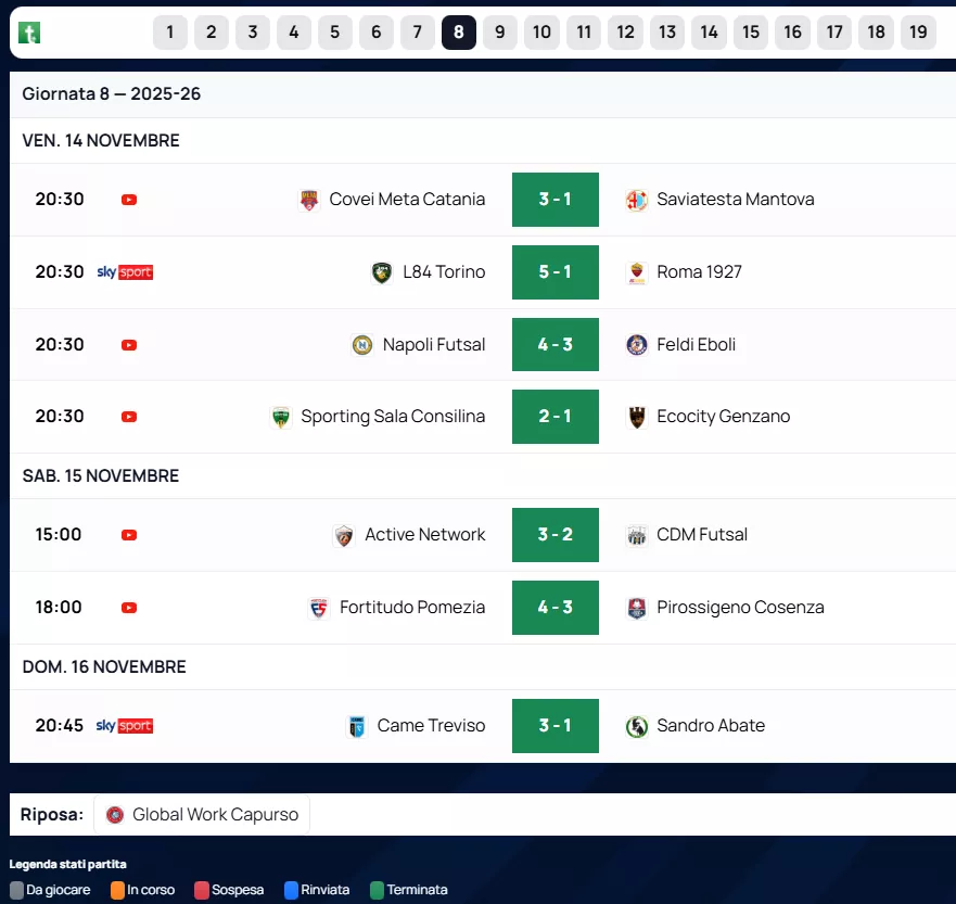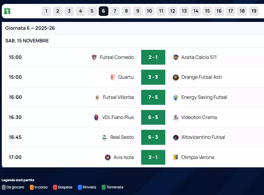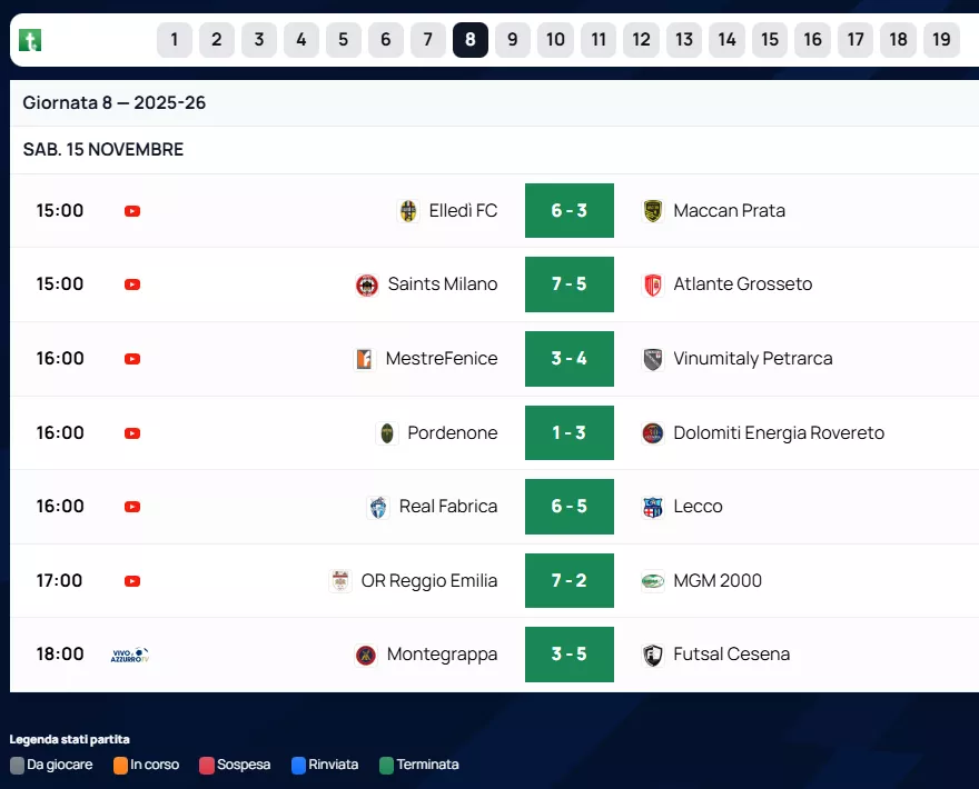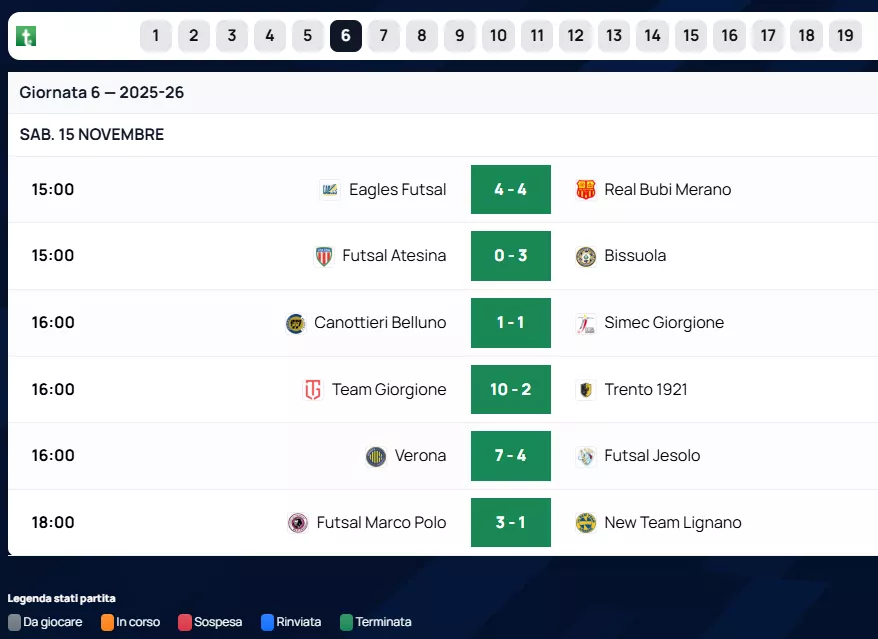 Di seguito RISULTATI & CLASSIFICHE & MARCATORI & ARBITRI al Triplice Fischio Finale delle squadre Venete di Futsal, nel Nazionale. Con le Designazioni Arbitrali dell'A.I.A.